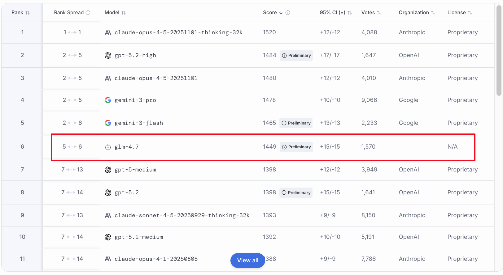 在大模型排行榜上,GLM4.7 超过了最新的 GPT-5.2,接近 gemini 和 Claude 等顶尖模型
