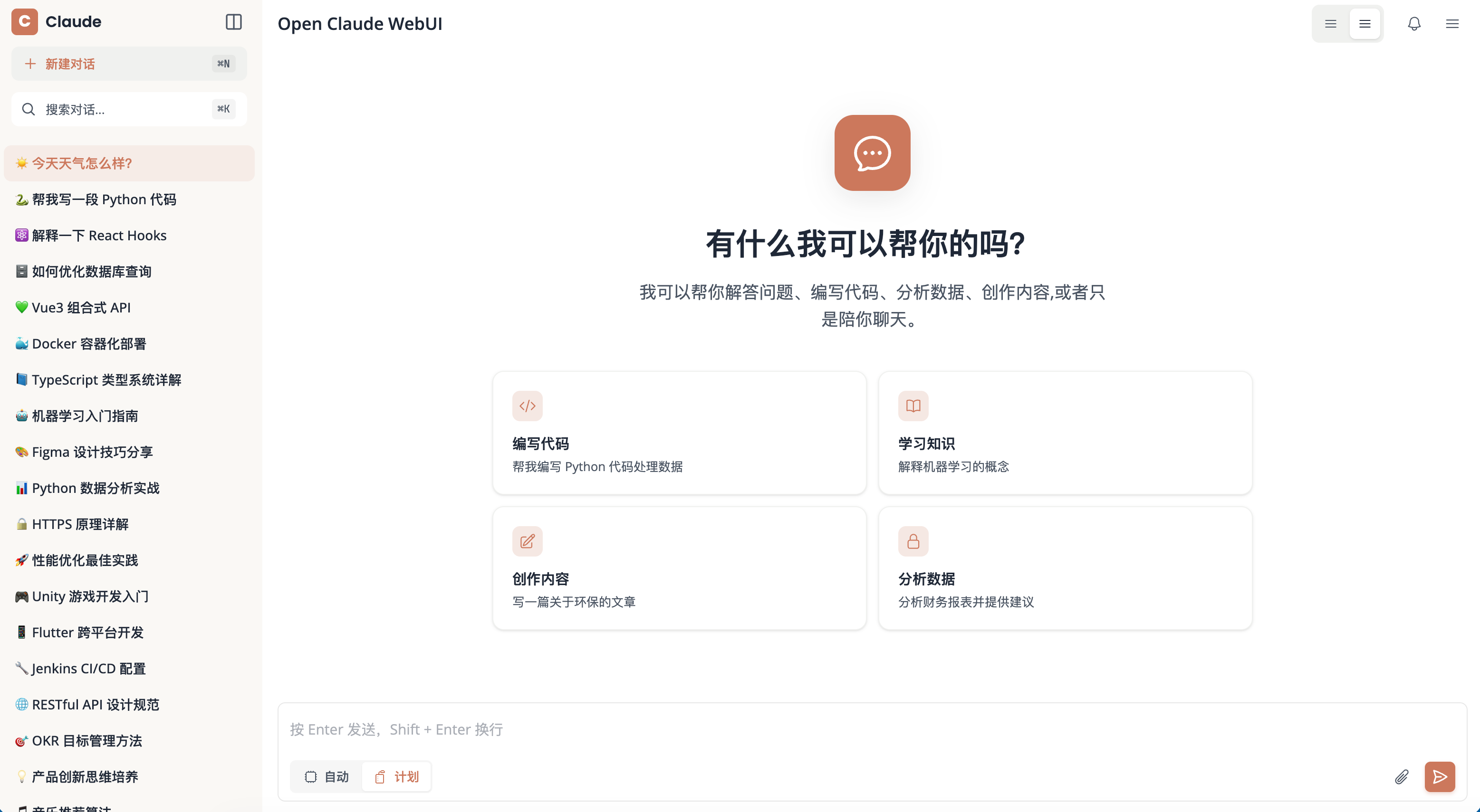 为了降低用户的学习成本 ,与现在所有的AI保持一致,用户在使用OpenAgentWebUI的时候,不需要学习新的指令,只需要按照现在的习惯来使用即可。