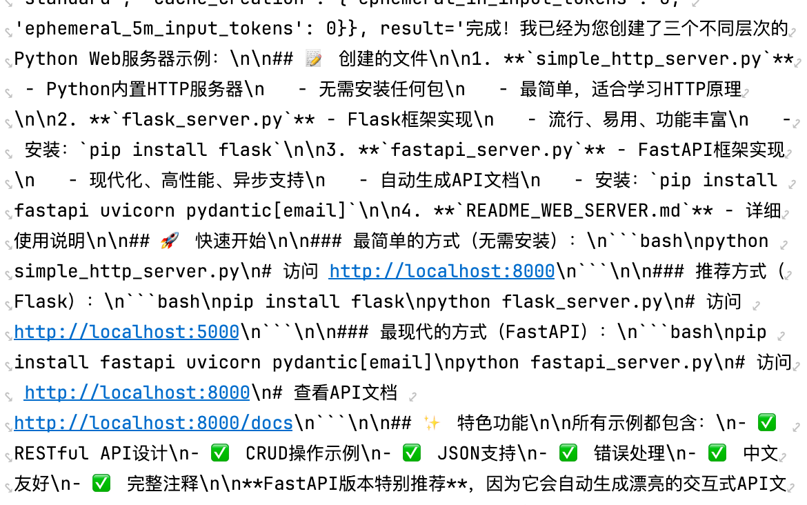 在代码执行过程中,可以看到AI成功调用了我们自定义的greet工具的过程