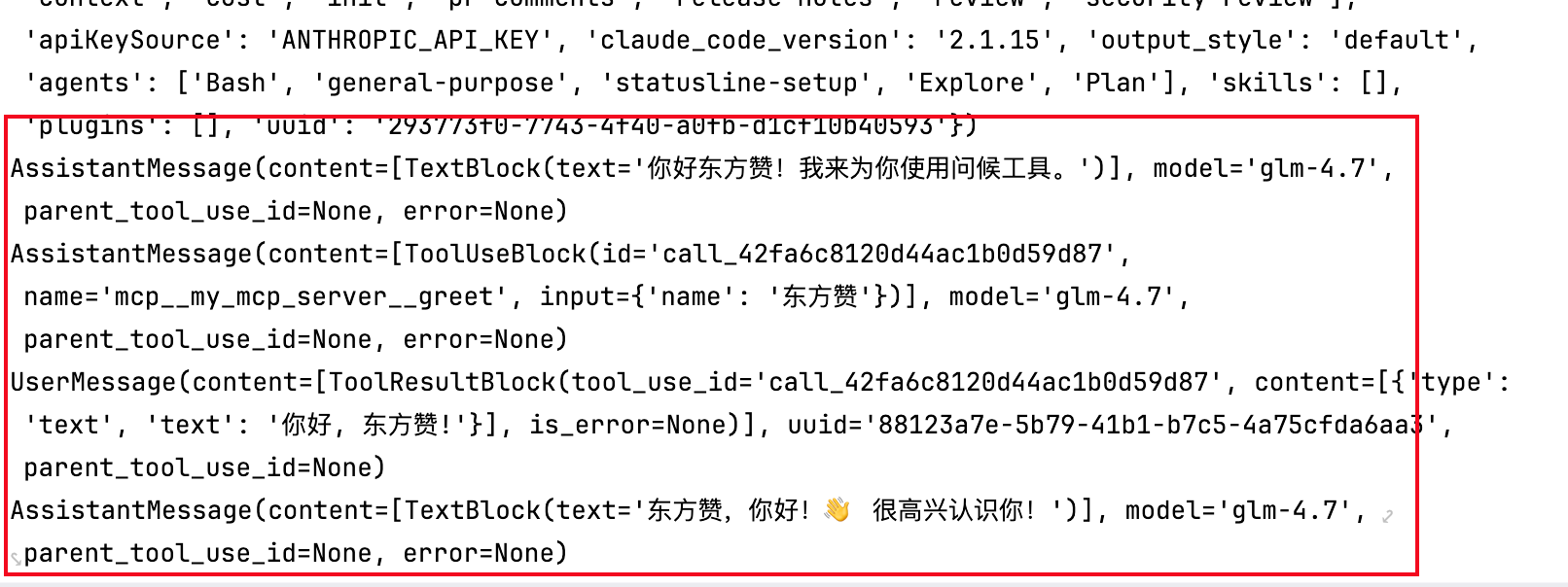 await client.query("你好,我叫东方赞,请使用greet工具")