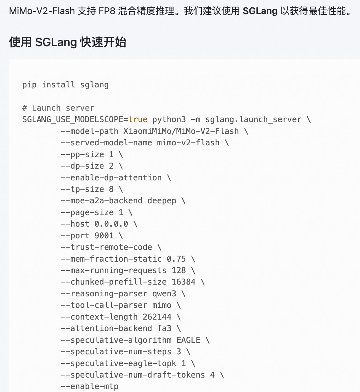 --model-path /root/.cache/huggingface/hub/XiaomiMiMo/MiMo-V2-Flash \